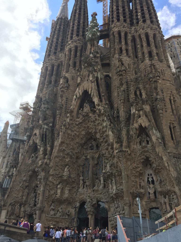 De Sagrada Familia. Misschien wel één van de bekendste of zelfs de bekendste bezienswaardigheid van Barcelona. Het is een Katholieke Basiliek waarvan de bouw al in 1882 begonnen is. Tot op heden is het nog niet klaar. Toen ik in Barcelona was hadden we een p + r uitgekozen en pakten vanaf daar een tram. Onze eerste stop was bij de Sagrada Familia. Helaas waren de kaartjes al uitverkocht voor een paar dagen waardoor het voor ons niet meer mogelijk was om binnen een kijkje te nemen helaas, maar van de buitenkant alleen al hebben we kunnen genieten. Een zeer indrukwekkend gebouw. Zoals op onderstaande foto te zien valt waren wij niet de enige!